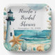 Schöne Brautparty-Teller mit einem schwarz-weißen Leuchtturm, Seestern und Muscheln. Ideal für eine Hochzeit. Die Wörter können geändert werden, um Ihre eigenen Angaben oder Anforderungen Anzug