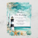 Schöne Geburtstagsfeier mit einem schwarz-weißen Leuchtturm, Seestern und Muscheln. Ideal für eine Geburtstagsfeier. Die Wörter können geändert werden, um Ihre eigenen Angaben oder Anforderungen Anzug