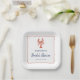 These chic coastal lobster bridal shower paper plates feature a red hand drawn lobster and wavy scallop frame.