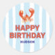 Nautical Lobster Kids Happy Birthday Runder Aufkleber