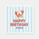 Set the stage for a nautical celebration with nautical kids birthday party napkins. These napkins showcase an enchanting lobster, modern blue and white stripes, and a personalized 'happy birthday' greeting with your child's name. Perfect for snack tables or cake time, these napkins unite fun style with convenience.