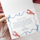 Express heartfelt gratitude with these elegant "She's a Catch" lobster-themed folded thank you cards! The front features a whimsical watercolor design with red lobsters, flowing blue ribbons, bows, and beige stripes, plus a sweet "Thank you" script and heart accent. Inside, a customizable pre-written message thanks guests for making the day unforgettable, with space for your personal note.