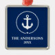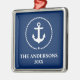 Nautical Navy Blue Anchor Name Year Square Ornament