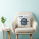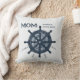 Mom pillow with Nautical heritage aesthetic celebrating the strength and guidance of Mom - perfect for birthday, mother's day or just something unique to go with her coastal living decor. Illustrated with a hand-drawn style classic ship's helm in a deep, steady blue, this pillow embodies the phrase 'steady in every storm.' All the wording is editable and you can personalize it with the names of loved ones, encircling the helm like a guiding compass. It's a perfect way to show appreciation for the matriarch who navigates life's challenges with grace and resilience.
