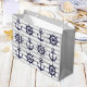 Nautical Navy Blue Anchor Boat Wheel Gray Stripe Große Geschenktüte