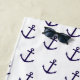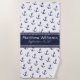 Dieses einfache und doch auffällige Strandtuch verfügt über einen gemusterten Untergrund mit einem blauen Anker und einem stilvollen Bereich, um Ihren Namen oder eine Botschaft Ihrer Wahl hinzuzufügen.