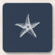 Eleganter und einzigartiger maritimer Untersetzer. Dieses Design zeigt eine Abbildung eines weißen Seesterns auf marineblau Hintergrund. Wählen Sie Ihren Lieblingsstil und Ihre Größe und kaufen Sie ihn jetzt oder geben Sie ihn als perfektes Geschenk an einen Meeresliebhaber.
