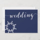 Blaue Hochzeitseinladung mit weißem Rad und veränderbarem Text