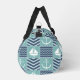 Ein inspiriertes Muster von stürmisch-türkisfarbenen Plätzen, die mit einem weißen Segelboot und Anker dekoriert sind, und die tiefmarineblauen Plätze, die mit blassblauen Chevrons und Wellen geschmückt sind, werden durch die weißen Stiche unterstrichen, um ein klassisches nautisches Ambiente zu schaffen.