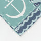 Ein inspiriertes Muster von stürmisch-türkisfarbenen Plätzen, die mit einem weißen Segelboot und Anker dekoriert sind, und die tiefmarineblauen Plätze, die mit blassblauen Chevrons und Wellen geschmückt sind, werden durch die weißen Stiche unterstrichen, um ein klassisches nautisches Ambiente zu schaffen.