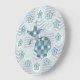 Ein inspiriertes Muster von stürmisch-türkisfarbenen Plätzen, die mit einem weißen Segelboot und Anker dekoriert sind, und die tiefmarineblauen Plätze, die mit blassblauen Chevrons und Wellen geschmückt sind, werden durch die weißen Stiche unterstrichen, um ein klassisches nautisches Ambiente zu schaffen. Ein Seestern und eine Muschel verdecken das Design in der Mitte, während ein anderer Stil von Seesternen die Zahlen für diese Uhr umrahmt.