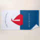 Embrace the coastal lifestyle with this beautiful nautical beach towel. Showcasing a bold red sailboat silhouette on a split white and navy blue backdrop, this design is both modern and timeless. Add your family name, 'The Wilkinson's,' and the location, 'Beach House,' for a uniquely personal touch that celebrates your seaside escape. This towel isn't just functional; it's a statement piece that will make your beach days even more special. Enjoy the softness and absorbency while basking in the sun.