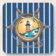 A Barware Coaster With A Nautical Rope and Boat Theme Stripe Design In Blue And White