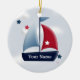 Ein niedliches Segelboot-Design auf einem Weihnachtsschmuck von Charmaine Paulson entworfen. Das Ornament hat Vorlagen für Ihre Personalisierung. ©2013charmainepaulson