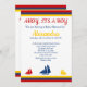 Nautical Sailboat Navy Blue Yellow Red Baby Dusche Einladung