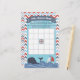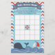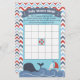 Dieses niedliche Baby-Dusche-Bingo-Spiel hat ein Wassersport-Thema mit verschiedenen Motiven wie Anker, Wal und Segelboot. Die Grenze ist ein rotes, weißes, blaues und graues Zickzack Zickzack. Die Oberseite hat ein blaues Banner, das sagt Baby Shower Bingo. Das Zentrum hat einen Lebensbewahrer, der "freien Platz" sagt. Die Anweisungen lauten "Füllen Sie die Quadrate mit den Geschenken, die Sie denken, dass die Mutter erhalten wird. Wenn die Geschenke geöffnet sind, markieren Sie alle Übereinstimmungen auf Ihrer Bingokarte. Wenn Sie 5 hintereinander (horizontal, vertikal oder diagonal) bekommen, schreien Sie Bingo!"