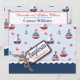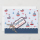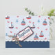 Nautisches Thema Taufen Einladung Karte mit Segelbooten, Krabben und Ankern mit einem 3D-Look Garn und Tag.