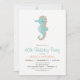 Nautic Seepferd Geburtstagsfeier Einladung. Das Seepferd ist in Korallen und Aquarelle gehalten.