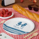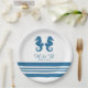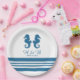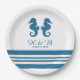 Elegante und klassische Nautical Seepferd Wedding Paper Teller mit einem Paar einfacher Seepferde und einer Reihe von Streifen in dunkelblau und weiß. Diese Teller zum Thema Wassersport können leicht an Ihre Hochzeitsdetails angepasst werden. Klicken Sie für weitere Anpassungsoptionen auf die Schaltfläche Anpassen.