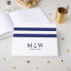 Nautical Stripes Monogramm, Initialen oder Bootsname Name blaue und weiße Anker Gästebuch (ideal für Hochzeiten) Anpassen Text nautische Segeltext, Kapitän Name. Name, Geschäft, Firmenname des Bootes. Minimalistisches, einfaches und elegantes Design, ideal für Segler, Bootsfahrer, Segler und Bootfahrer. Alles Gute zum Segeln!