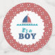 Ein einfaches aber auffälliges Konfetti-Design mit skurrilen nautischen Elementen in Rot, Weiß und Blau. "Es ist ein Boy"-Text, ein Spukwal, ein Segelboot und ein großer Anker sind Teil dieses niedlichen Designs. Suchen Sie ID527, um weitere Produkte mit diesem Design zu sehen.