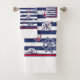 Ein schönes und farbenfroh gestaltetes Badetuch-Set mit einem blauen, roten und weißen Wasserthema