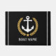 Dekorieren Sie Ihren Zuhause-Eingang mit einer nautischen Haustür und Ihrem personalisierten Bootsnamen, Familiennamen oder anderen gewünschten Text. Mit einem eigens dafür entworfenen Bootsanker mit goldfarbenen Lorbeertönen und Stern-Emblem mit nautischen Seilstreifen auf einem stilvollen schwarzen Hintergrund oder passen die Primärfarbe einfach an Ihre aktuelle Dekoration oder Ihr aktuelles Thema an.
