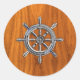 Nautical Wheel auf Teak Veneer Runder Aufkleber