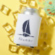 Nautical White Sailboat Navy Blue Coasty Monogram Dosenkühler