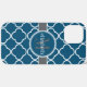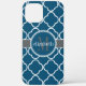 Stilvolles und elegantes Quatrefolienmuster. Dieses Muster, das für das vierblättrige Kleeblatt repräsentativ ist, war in der Zeit der Gotik und der Renaissance der Geschichte in hoher Mode. Personalisieren Sie sich mit Ihrem Namen und Initial. Erstellt von Holiday Hearts Designs für HHHTrendyCases. Hier in nautisch blau, grau und weiß dargestellt.