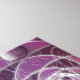 Ein farbiges Glasdesign aus silbernen Spiralen und Pflaumenfarben, über eine sich wiederholende Kulisse von spiralförmigen Fraktalen. Die silbernen Spiralen vereinigen sich in ein silbernes Rose-Design mit runden Edelsteinen für Akzente.