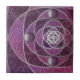Ein farbiges Glasdesign aus silbernen Spiralen und Pflaumenfarben, über eine sich wiederholende Kulisse von spiralförmigen Fraktalen. Die silbernen Spiralen vereinigen sich in ein silbernes Rose-Design mit runden Edelsteinen für Akzente.