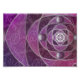Ein farbiges Glasdesign aus silbernen Spiralen und Pflaumenfarben, über eine sich wiederholende Kulisse von spiralförmigen Fraktalen. Die silbernen Spiralen vereinigen sich in ein silbernes Rose-Design mit runden Edelsteinen für Akzente.