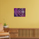 Ein farbiges Glasdesign aus silbernen Spiralen und Pflaumenfarben, über eine sich wiederholende Kulisse von spiralförmigen Fraktalen. Die silbernen Spiralen vereinigen sich in ein silbernes Rose-Design mit runden Edelsteinen für Akzente.
