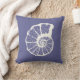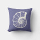 Ein staubiges blaues Kissen, das eine Nautilus-Muschel kennzeichnet. Seethema für Ihren Strandhausdekor.