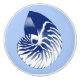 Digital-Skizze einer gestreiften Nautilus-Muschel - dunkle Marineblau- und -WEISS-Muschel gegen einen hellen Chambrayblauhintergrund