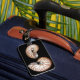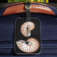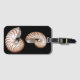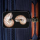 Zwei Nautilus Muscheln auf einem schwarzen Gepäckanhänger.