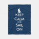 Nautisch behalten Sie Ruhe und Segel auf Fleecedecke. Schaffen Sie Ihr eigenes lustiges behalten Ruhe und weitermachen Parodie für das Segeln/Bootfahrt. Vintage keepcalm Typografieschablone mit Segelboot/Schiff. Kundenspezifisches Hintergrundfarbie-Marineblau. Niedliche keepcalmandcarryon Spoofbeispiele: Behalten Sie Ruhe und Boot an. Behalten Sie Ruhe und Segel an. Behalten Sie Ruhe und reisen Sie an. Verfügbar im kleinen Medium und groß. Seethemazusatz.