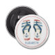 Dieser niedliche runde Flaschenöffner an der Küste zeichnet sich durch ein paar Flip Flops in sanften Aquarelltönen in Rot, Weiß und Blau mit nautischen Ankern aus. Personalisieren Sie Ihre Auswahl an Namen oder speziellen Nachrichten. Ideal für personalisierte Gastgeschenke.