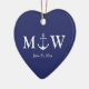 Hochzeit nautische Anker marineblau-blau und weiß Custom Paar monogramm Initialen Weihnachts Herz Keramik Ornament. Minimalistisches, elegantes Design personalisierbarer Karo der Erholung der Kollektion für Favoriten, Geschenketiketten, Aufkleber, Siegel, Etiketten, Party-Vorräte, Geschenktaschen, Geschenkboxen, Karten, usw. ideal für Seebadestrandfeste Hochzeiten