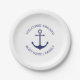 Name oder Familienname des Schiffes nach Maß, Begrüßungsbegleiter, blau-blaue Ankernacht, weißer Hintergrund Party Papier Teller. Passen Sie Text nautic Segeltext, Kapitän Name, Bootsname, Familienname etc. ideal für Segler, Boote, Segeln und Boot Happy Sailing!