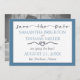 Mit diesem einfachen und klassisch eleganten nautischen Design verkünden Sie Ihr Hochzeitstag. Die Vorderseite liest "Save the Date" und weist eine Länge des Seils auf, locker geknotet und bildet ein Herz. Der Außenrand hat einen dünnen, zweizeiligen Rand als Akzent. Personalisieren Sie den restlichen Text mit den einfach bereitgestellten Vorlagen. Text- und Designelemente werden in einem weichen, kohlefarbenen Grau-Blau gedruckt. Legen Sie Ihr eigenes Foto auf die Rückseite, indem Sie das Beispiel-Foto durch ein eigenes Verlobung-Foto ersetzen. Passen Sie die Farbe der Frontrahmen an, indem Sie die Option 'Anpassen' auswählen und Ihre eigene Farbe aus der Auswahl 'Druckhintergrundfarbe' auswählen. Sie können auch den Typ zu bearbeiten, um eine beliebige Farbe wollen, um Ihre Hochzeit Thema.