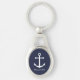 Moderner Minimalistischer Nautical Schlüsselanhänger mit weißem Anker mit personalisiertem Namen in weißem, modernem Sans Serif Schriftart auf marineblau Hintergrund.