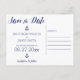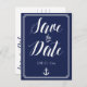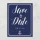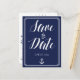Nautische Hochzeit Sichern Sie die Date-Postkarten mit weißem Rahmen, Anker und benutzerdefiniertem, weißen Text - Sie können Text ändern, gedruckt auf marineblau Hintergrund