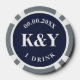 Nautic Hochzeit Poker Chip Token für Getränke. Navy blaue und weiße Ankerkonstruktion mit Braut- und Bräutigam-Monogramm. Individuell gestaltbare Initialen plus Heiratsdatum. Personalisierte Party-Poker-Chips mit mit Monogramm Namen Ersteinstieg des neuen Ehepaares. Fun maritime Token Geschenkidee für Hochzeitsgäste. Ideal für thematische Austragungsorte in Las Vegas oder die Hochzeit am Strand. Auch gut für Segler, Bootsführer, Skipper etc. Verwenden Sie zum Trinken an der Bar. Kann auch als Keepake oder als Golf Ball Marker verwendet werden. Ändern Sie die Menge, um den billigen Bulk-Preis zu erhalten. Beidseitiger Druck. Anpassbare Kantenfarbe.