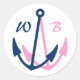 Nautische Hochzeitsticker mit mit Monogramm Ankern Runder Aufkleber