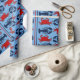 Nautisches Geschenkpapier mit Krabben und Hummer Muster. Rot und Blau, männliche Farbe und Design, ist für jeden besonderen Tag des Typ geeignet. Jeden Anlaß, Qualitätspapier auf einer Rolle mit einem Sommer- / Seelebensdruck.