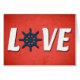 Liebe nautisches Design mit Segelraddekoration auf rotem Grund