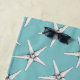 Moderne, trendige Sommer-Atmosphäre bietet Küsten-Badetuch mit einem modernen, von Hand gezeichnet, weißen Seestern Muster auf einem aquaozeanblauen Hintergrund. ++++++++++ Perfekt für den Sommer- oder Strandurlaub!
