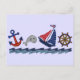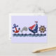Grafische Darstellung des nautischen Musters von Segelbooten, Schiffsrad, Anker und Wal auf dem Wasser. Mit diesem Design absegeln!